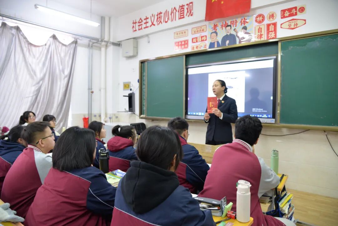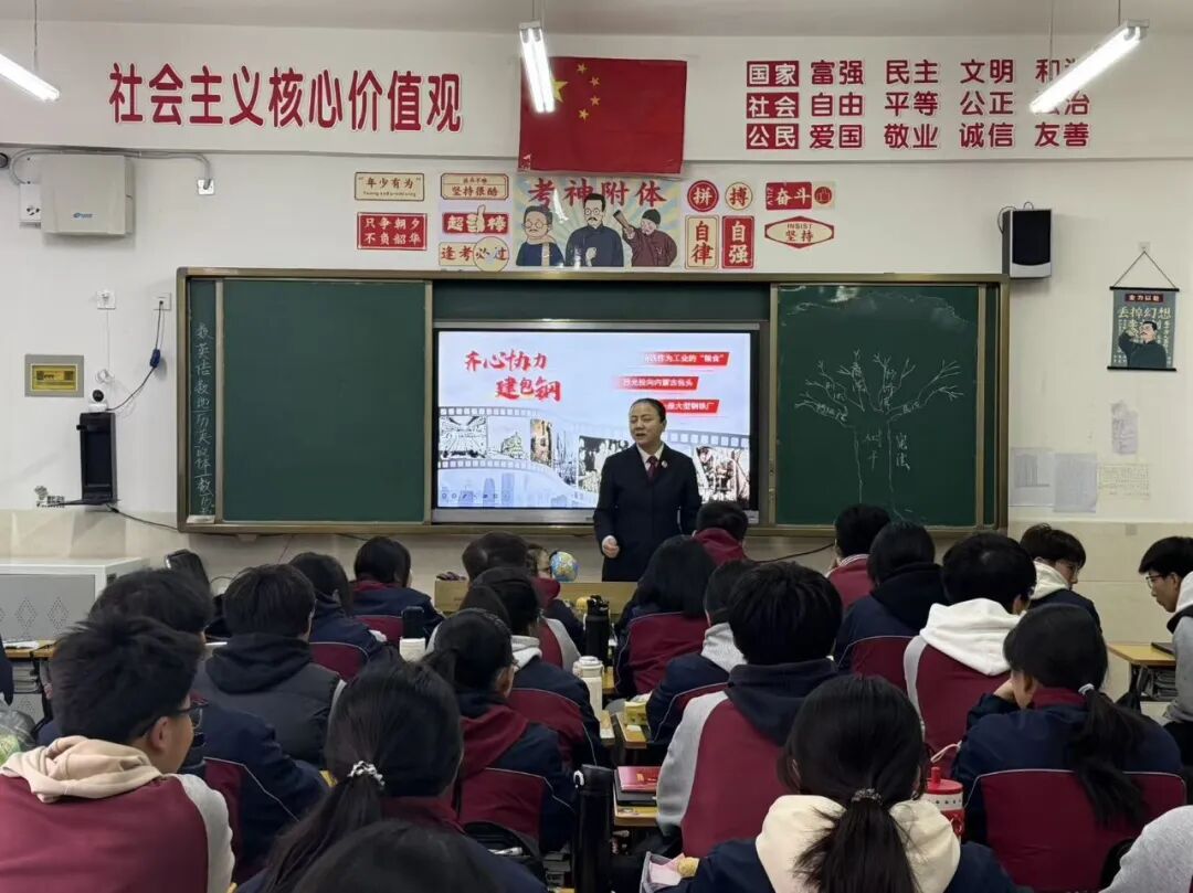 2025年12月4日是第十二个国家宪法日,今年“宪法宣传周”的活动主题是“学习宣传贯彻习近平法治思想,推动宪法深入人心”。为了深入学习宣传宪法精神,提高人民群众对宪法的知晓度,近期,石拐区人民检察院“萤火”未检团队走进石拐区苏蒙实验学校,针对高中年级的学生们开展了以“红色包头里的宪法精神”为主题的法治宣讲课。