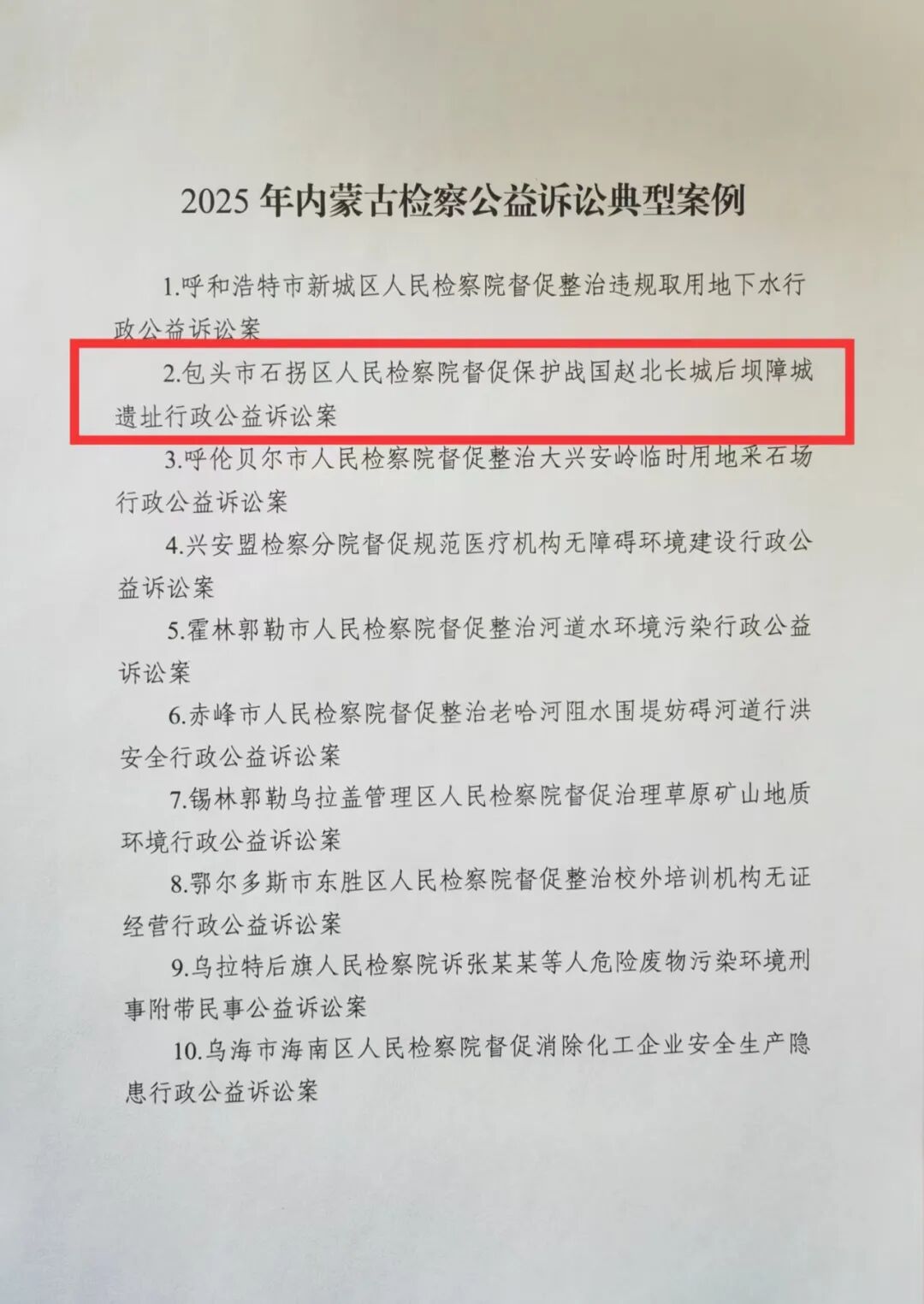 近日,自治区检察院发布2025年全区公益诉讼检察典型案例,共评选出10件涉及山林保护、河湖保护、草原保护、文化遗产保护、安全生产等领域的典型案例。其中,我院办理的1件行政公益诉讼案成功入选。