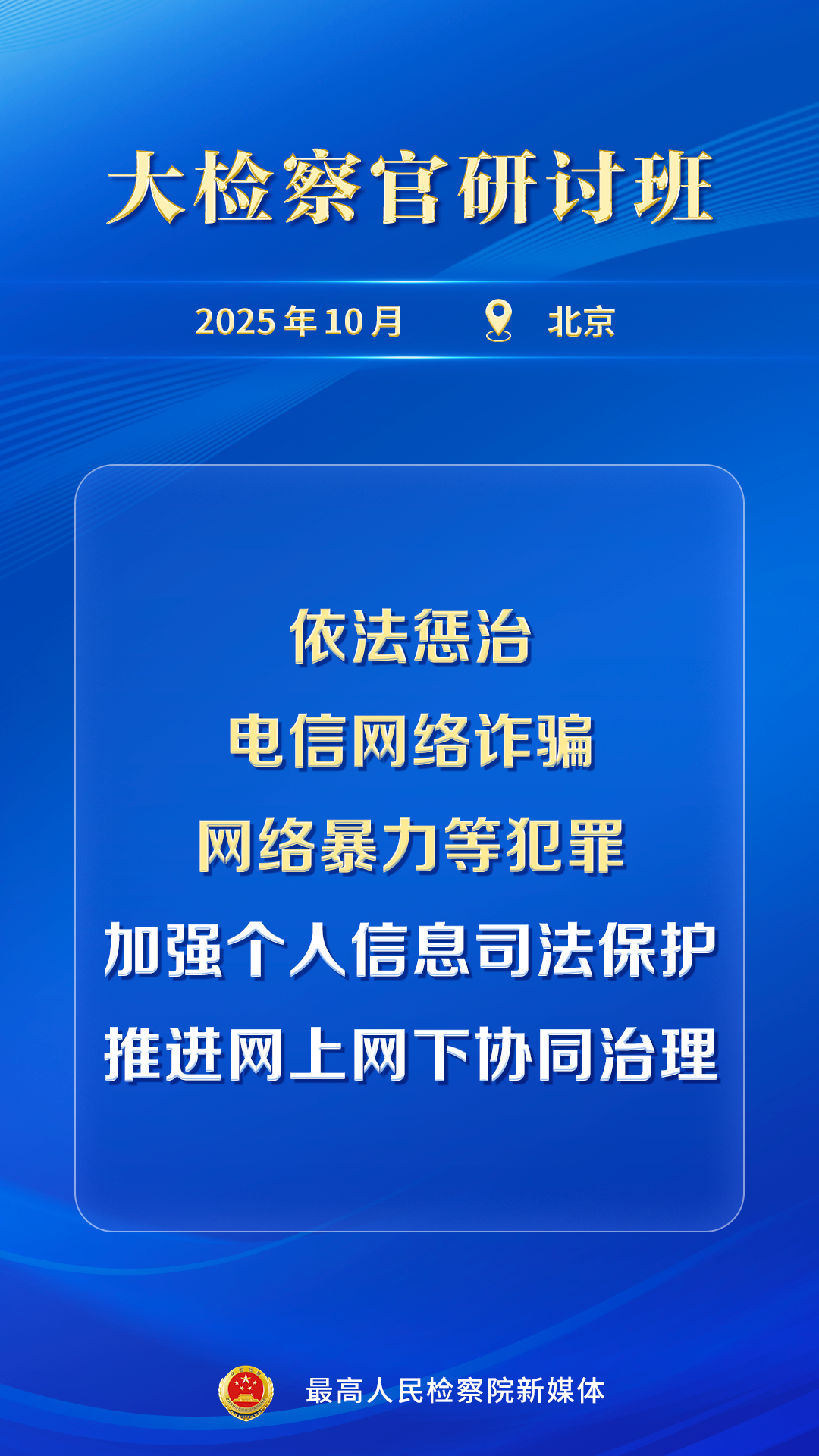 10月31日,大检察官研讨班在国家检察官学院举办。最高人民检察院党组书记、检察长应勇出席开班式并讲话。讲话中释放了哪些重要信息?一组海报带您速览!