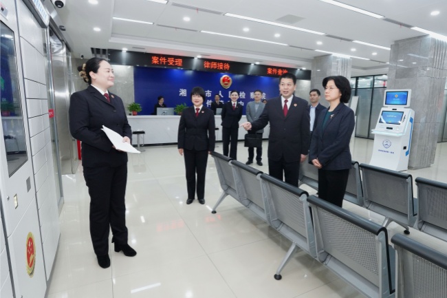 二〇二五年十二月,湖南省检察院党组书记、检察长叶晓颖(右一)在湘潭市检察机关调研。