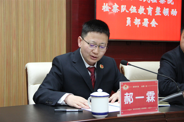 为深入贯彻落实党中央、自治区党委、包头市委、石拐区委和上级检察机关关于开展政法队伍教育整顿的决策部署,扎实开展检察队伍教育整顿,3月12日,石拐区检察院召开了检察队伍教育整顿动员部署会,安排部署全院教育整顿工作。会议由党组成员、政治部主任刘宇翔主持,院领导班子、全体干警参加会议。区委政法委常务副书记郑瑜到会指导,我院党组副书记、副检察长郝一霖作动员部署讲话。