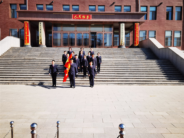 为扎实推进检察队伍教育整顿,不断增强干警责任感和使命感,3月22日上午,石拐区检察院举行升国旗仪式暨检察队伍教育整顿推进会,伴随着雄壮的《义勇军进行曲》,全体干警面向冉冉升起的五星红旗昂首肃立,行注目礼致敬,表达对祖国的无限忠诚和热爱之情。